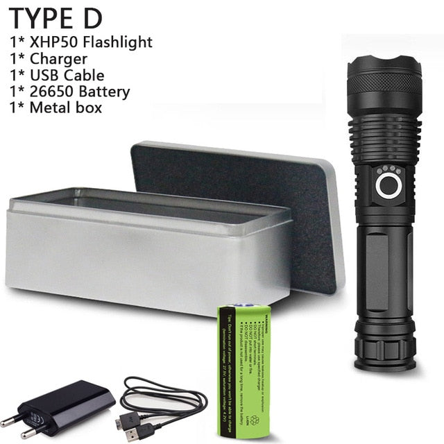 Power (XHP50): 1* 18650 or 1* 26650 rechargeable battery